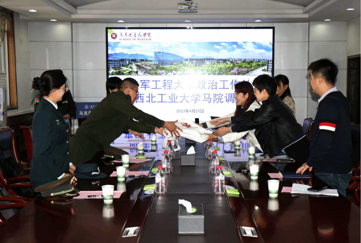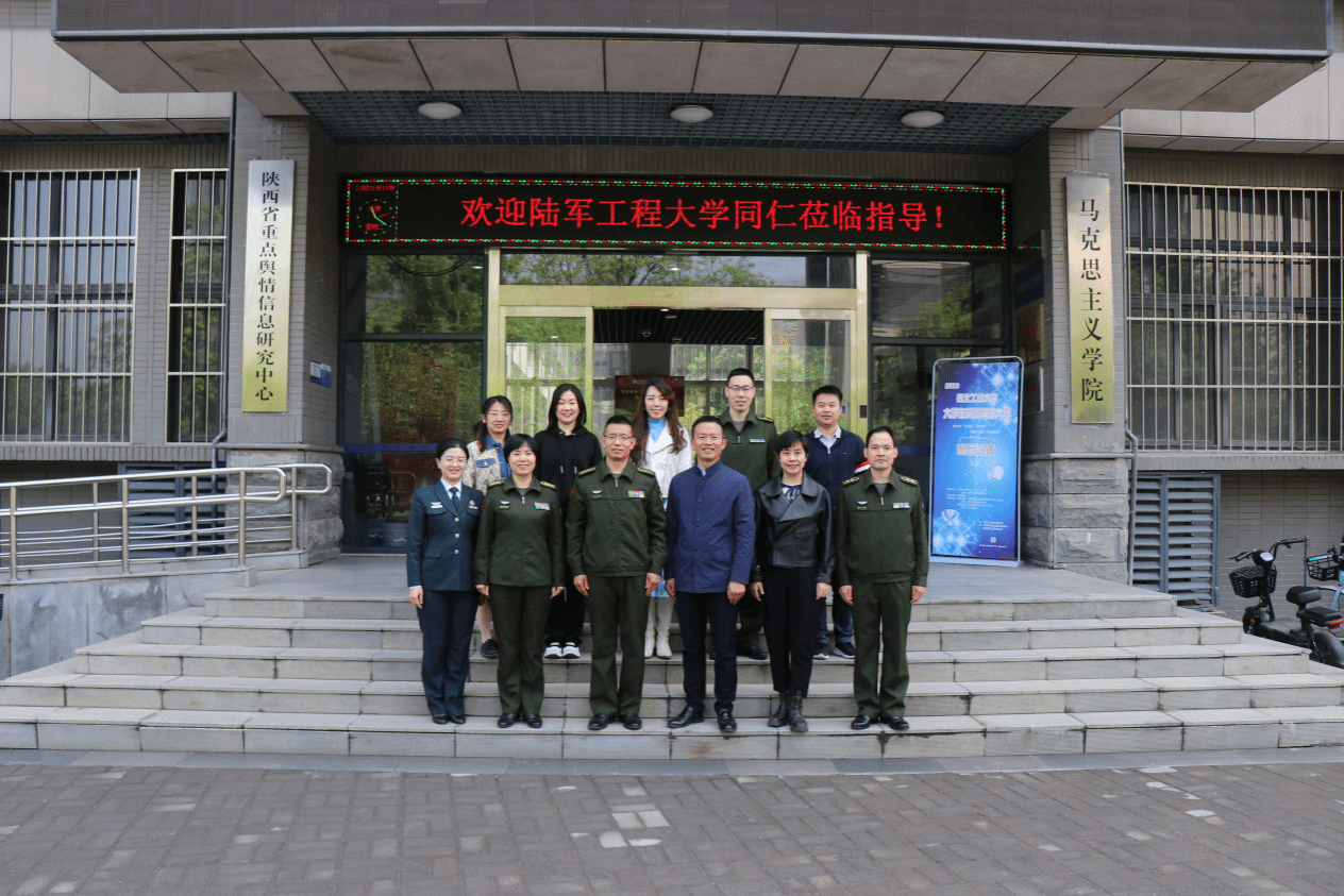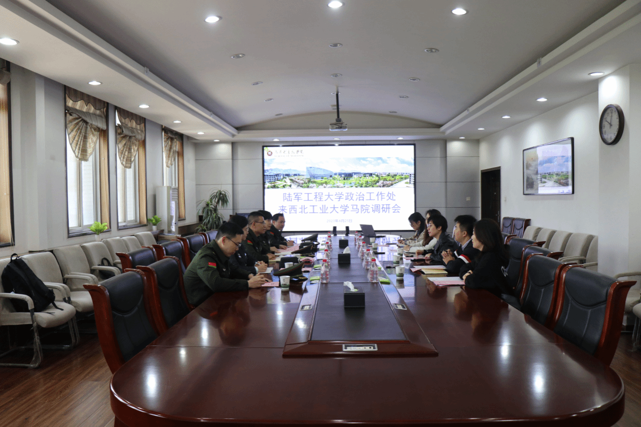 贺苗代表beat365亚洲版官网对陆军工程大学政治工作处的来访表示欢迎,并就学院概况、研究机构、师资队伍、思政课建设、公共课教学、陕西省重点舆情信息研究中心建设、虚拟仿真实验室建设等情况作详细介绍,同时结合自己思政课教学实践,介绍了思政课教学及其改革、一流课程建设尤其是虚拟仿真课程的建设情况和经验。她表示,学校党委对beat365亚洲版官网的建设高度重视,对思政课教学、马学科发展、学院师资队伍建设、高层次人才引进、“大思政课”建设上大力支持,学院上下积极落实“集全校之力办好beat365亚洲版官网”的决策部署,并指出学院后续发展思路、建设规划以及思政课专项改革重点任务举措。