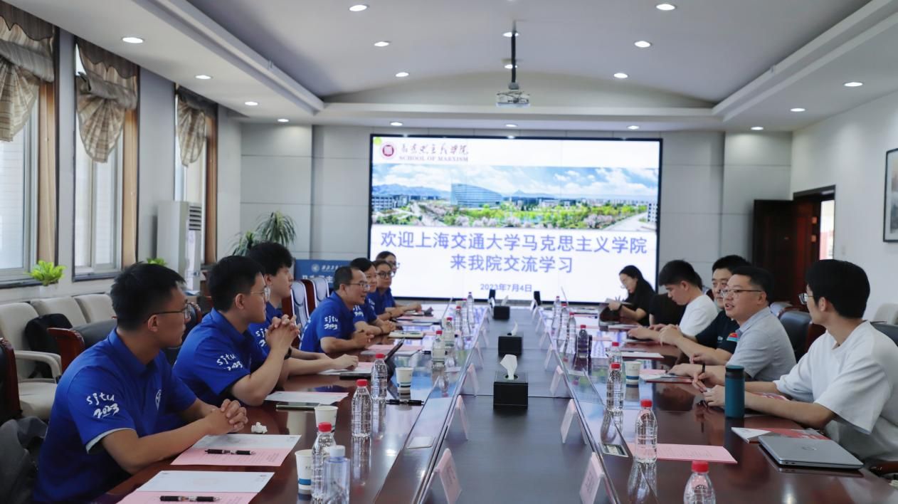 接着,双方就学院建设、师资队伍、宣讲团开展情况等事宜在beat365亚洲版官网208会议室进行深入交流探讨。李刚首先对上海交通大学beat365亚洲版官网师生们的到来表示热烈欢迎,并邀请与会人员共同观看了学院的宣传片,了解学院的发展历程和建设情况。杜夏明介绍了上海交通大学beat365亚洲版官网在学院建设、宣讲团建设等方面的特色做法和体会。