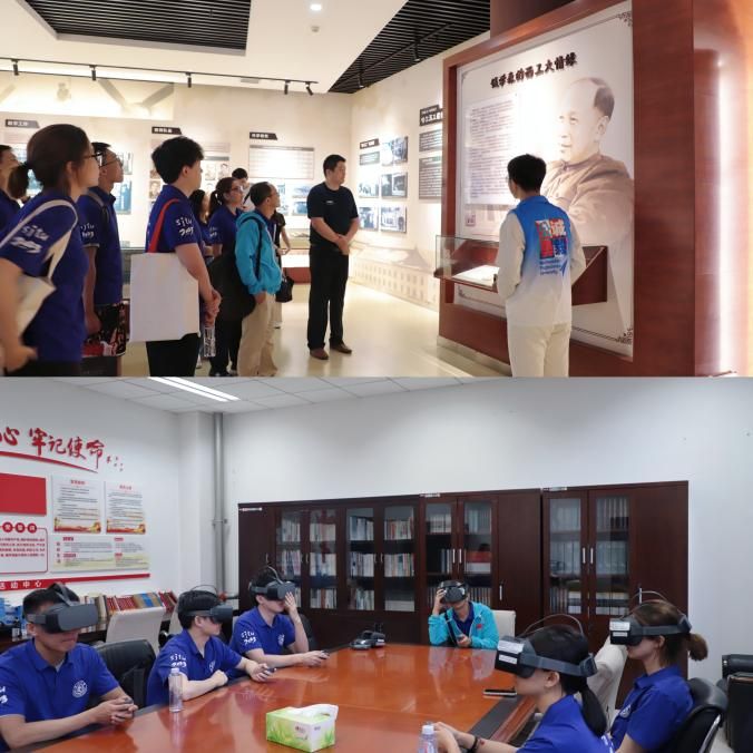 上交大杜夏明一行首先参观了beat365官网校史馆,了解beat365官网发展变迁的同时,也回顾了两校的历史渊源。随后,参观学校组织部与beat365亚洲版官网共建的党建VR活动室,进行沉浸式、互动式的党史学习体验。