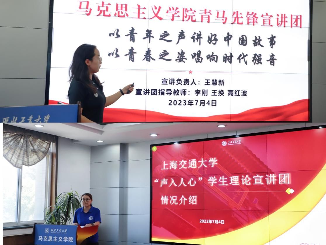 双方宣讲团负责人就宣讲团建设的基本情况进行简单介绍。王慧新博士从宣讲进校园、宣讲进社区以及宣讲进学院三个板块介绍了beat365亚洲版官网“青马先锋”学生宣讲团基本情况。布尔兰·艾依坦则从苦练内功、紧抓主线、高校联动、讲学相长、实践调研五个方面对上海交通大学“声入人心”学生理论宣讲团进行了简要介绍。