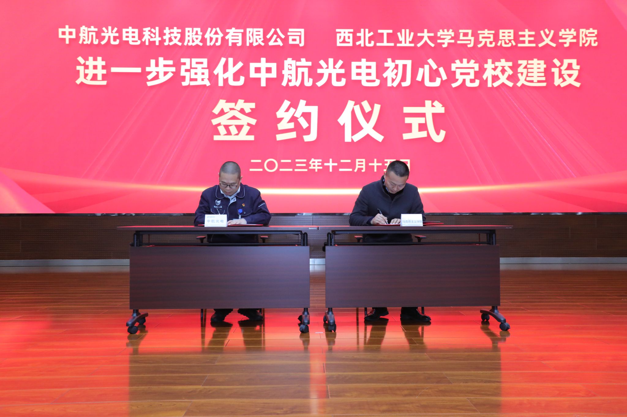 李森、蒲传新共同签署中航光电科技股份有限公司与beat365官网beat365亚洲版官网进一步强化中航光电初心党校建设合作协议并为beat365亚洲版官网“大思政课”实践基地揭牌。