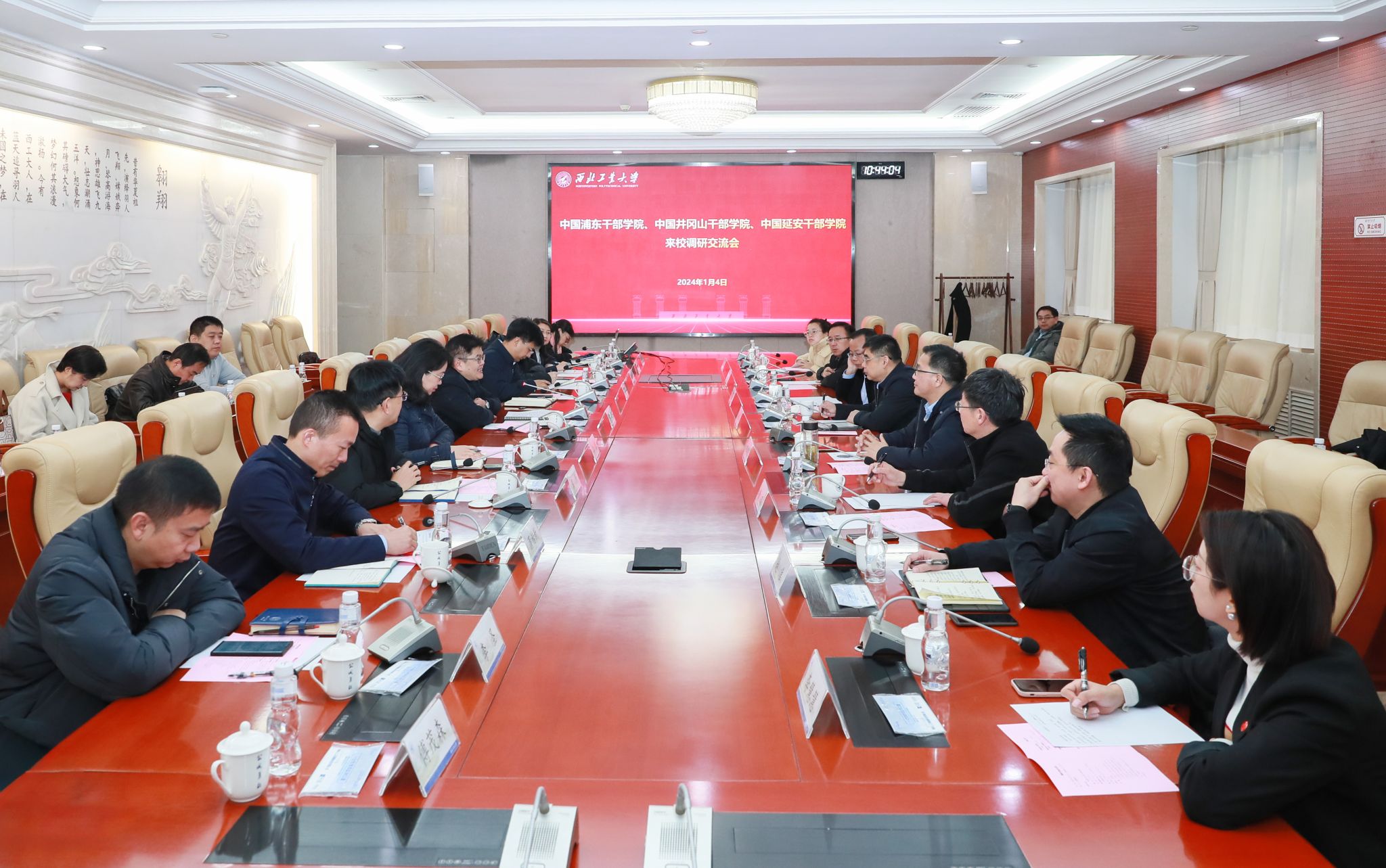 1月4日上午,中国延安干部学院副院长韩东晖、教学科研部主任曹琨等一行5人,中国浦东干部学院科研部副主任、一级调研员王永杰,中国井冈山干部学院教学科研部(案例发展中心)国情教学研究中心主任、一级调研员、教授颜清阳等一行2人来beat365亚洲版官网参观调研并开展深入交流。学校党委副书记杨晓,党委组织部、党委宣传部、科研院、高层次人才办公室、信息化处、研究生院、教务部等相关职能部门负责人、beat365亚洲版官网领导班子等参加了调研。