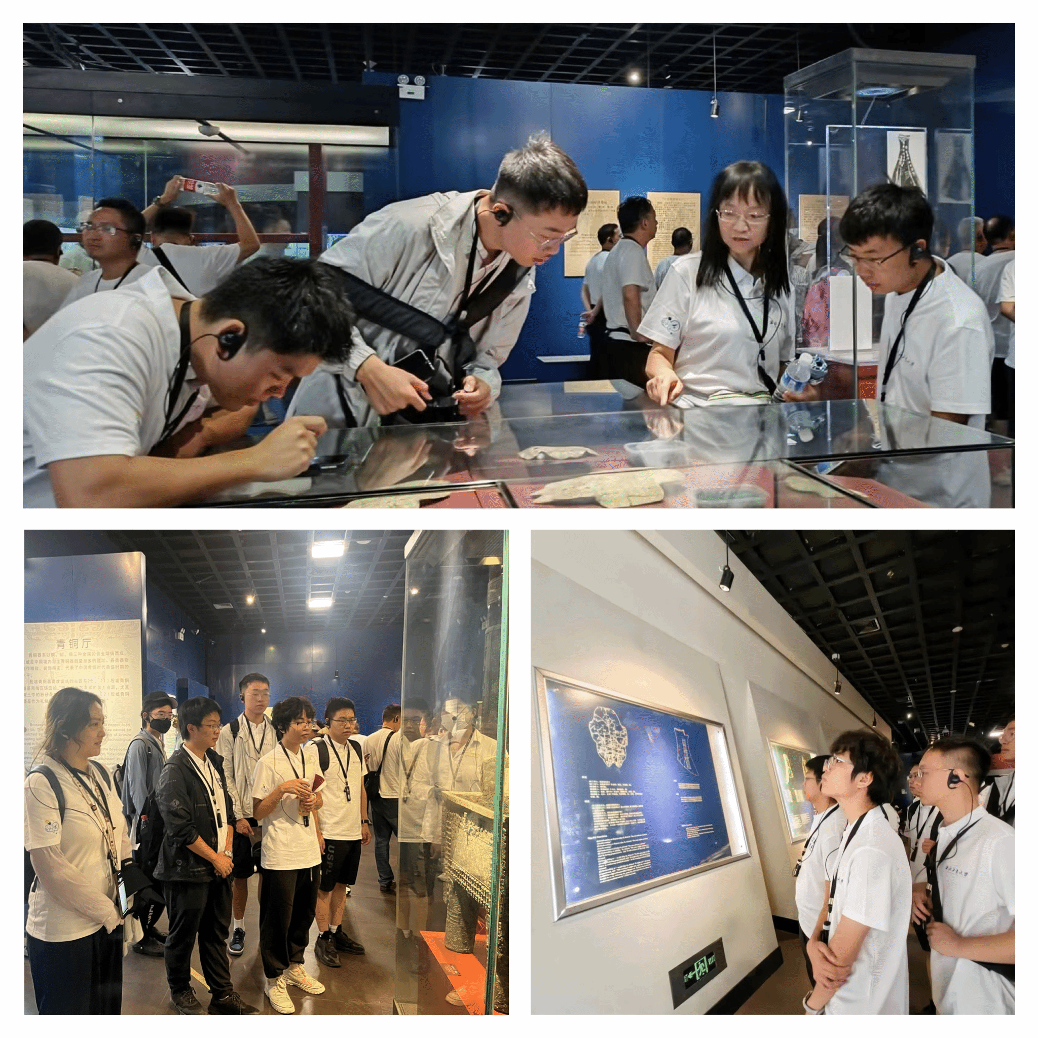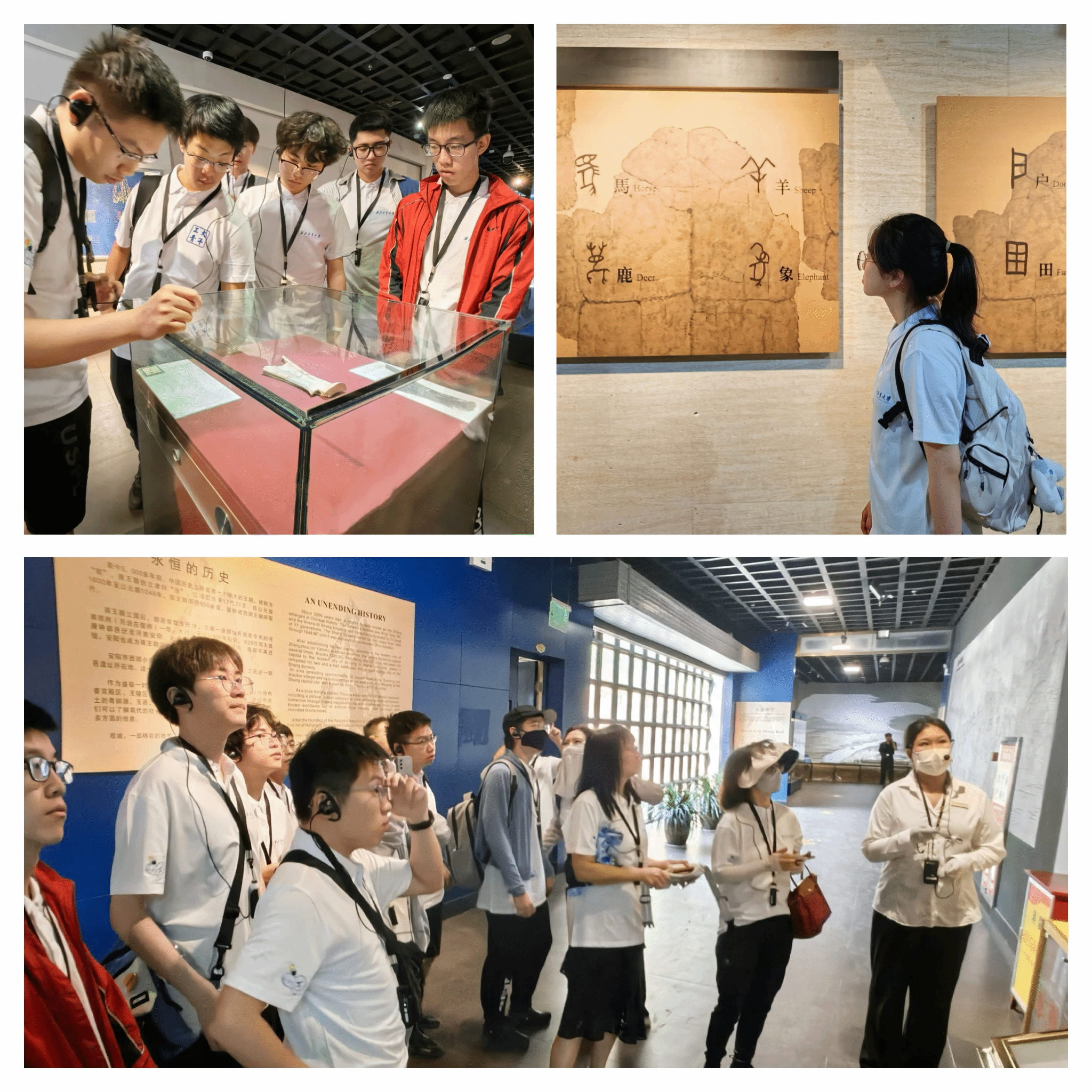 实践队下午来到中国文字博物馆。调研学习中了解到,作为中华汉字文化的科普中心、全国科普教育基地、爱国主义教育基地,中国文字博物馆以中国汉字发展史为线索,详细介绍梳理了汉字的历史变迁及其中蕴含的中华优秀文化传统,馆内还介绍了各少数民族文字及其发展,体现了五十六个民族五十六朵花,中华儿女是一家的民族情怀。同学们饶有兴致地对馆内各个展厅进行了认真专注的参观研学,既丰富了甲骨文、金文、简牍以及汉字发展史、汉字书法史、少数民族文字等相关知识,也领会到中国文字构形特征和形成、发展、演化的历史过程,更感受到中国文字无与伦比的意美、音美和形美。