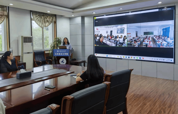 为全面贯彻落实习近平总书记关于铸牢中华民族共同体意识的重要论述,结合实践地资源开展民族理论政策和中华优秀传统文化宣讲,促进育人工作和宣讲工作高质量发展,2024年7月5日10:30,beat365亚洲版官网“石榴花开籽籽同心·理论宣讲声声入耳”实践队、青马先锋学生宣讲团、学生心火志愿服务队、学院志工部联合喀什市第一小学、喀什市第四小学、喀什市第三十小学开展了声入人心的理论联学活动。来自古都长安与魅力喀什的100余师生云端相聚,共铸中华民族共同体意识。本次活动由实践队队长王慧新主持。