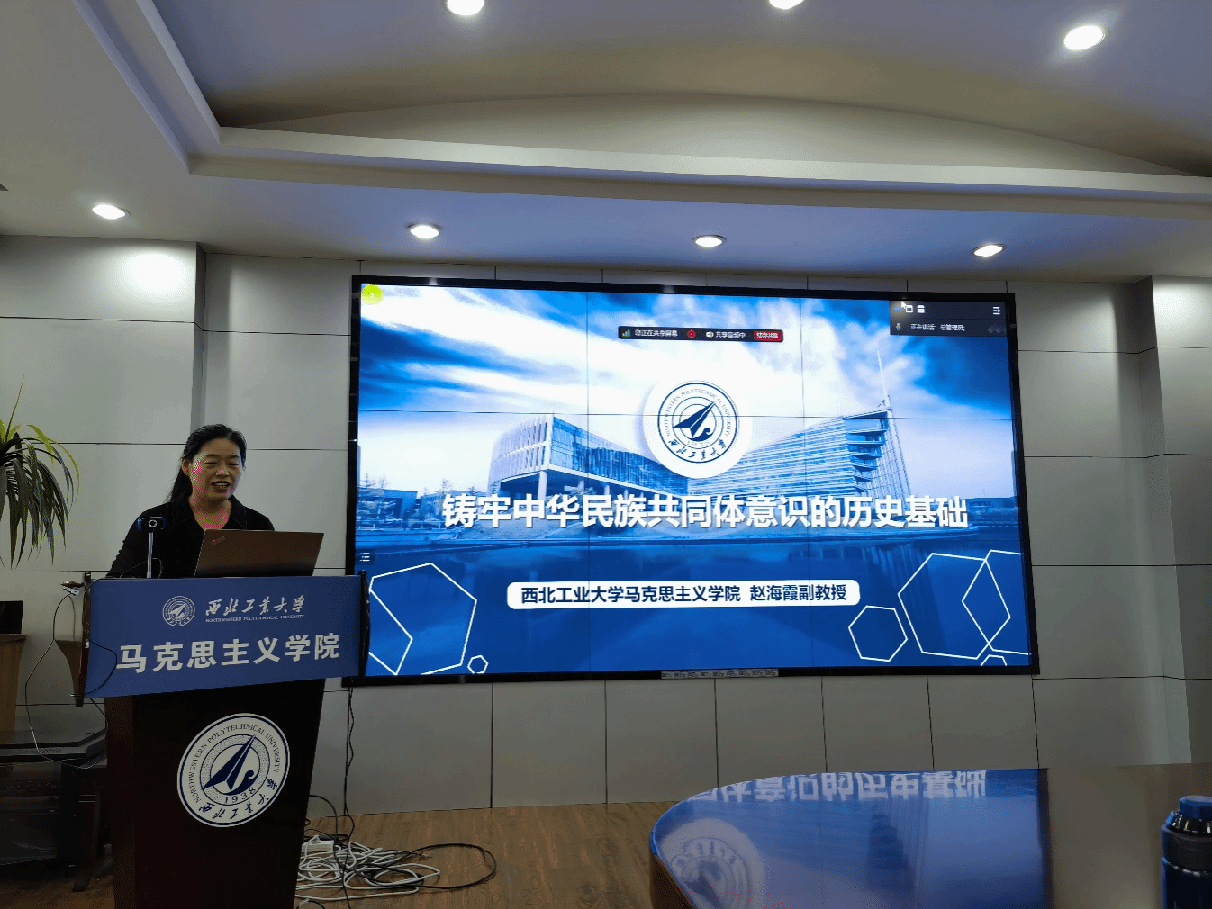 在第三环节中,beat365亚洲版官网副教授赵海霞以《铸牢中华民族共同体意识的历史基础》为题作专题报告,鞭辟入里,高屋建瓴,从共同体与中华民族共同体、中华民族共同体意识的历史基础等方面讲述了中华民族共同体由“自在”向“自觉”的转变,与会人员受益匪浅。