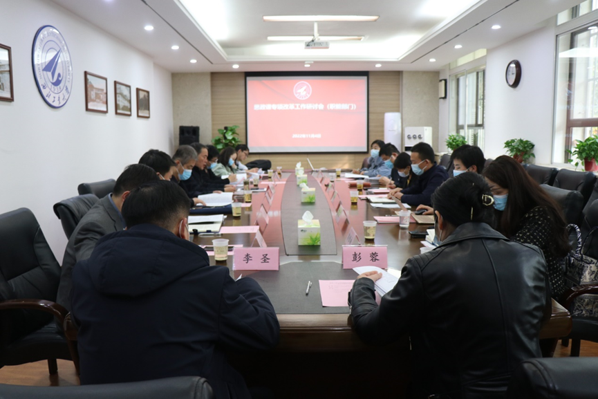 11月4日下午,学校思政课专项改革试点方案研讨会在友谊校区学校办公楼A223会议室举行。学校党委副书记陈建有、发展规划处朱继宏、图书馆侯沛勇、党委宣传部全家悦、人事处王增磊、科学技术研究院李鹏、教务处孙中奎、研究生院李圣、学生处彭蓉及beat365亚洲版官网班子成员参加了研讨会。会议由陈建有主持。