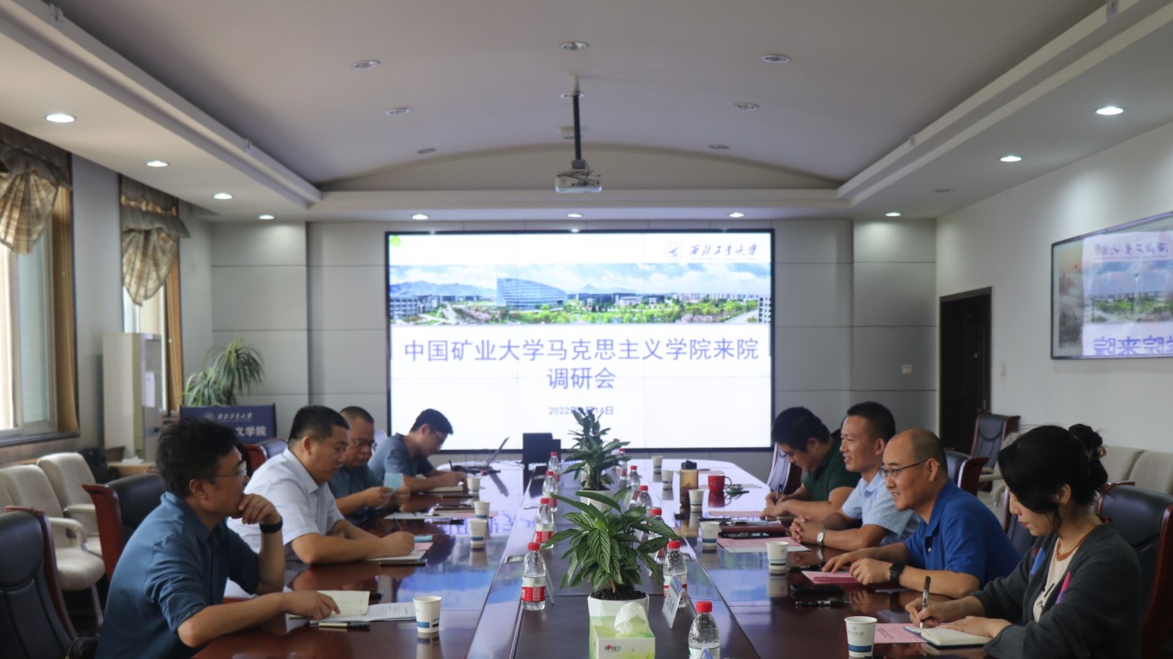 蒲传新代表马院对矿大马院一行表示欢迎,就学院研究机构、师资队伍、科研成果、教材建设、党建和学生工作情况等方面做了整体介绍。他介绍到,学校党委对beat365亚洲版官网的建设高度重视,学院上下积极落实好学校党委“举全校之力办好马院”的决策部署;介绍了三航背景下beat365亚洲版官网的特色创新发展的思路,以及国防特色;同时也指出学院现阶段发展存在的一些薄弱环节,也希望通过交流研讨,学习互鉴。