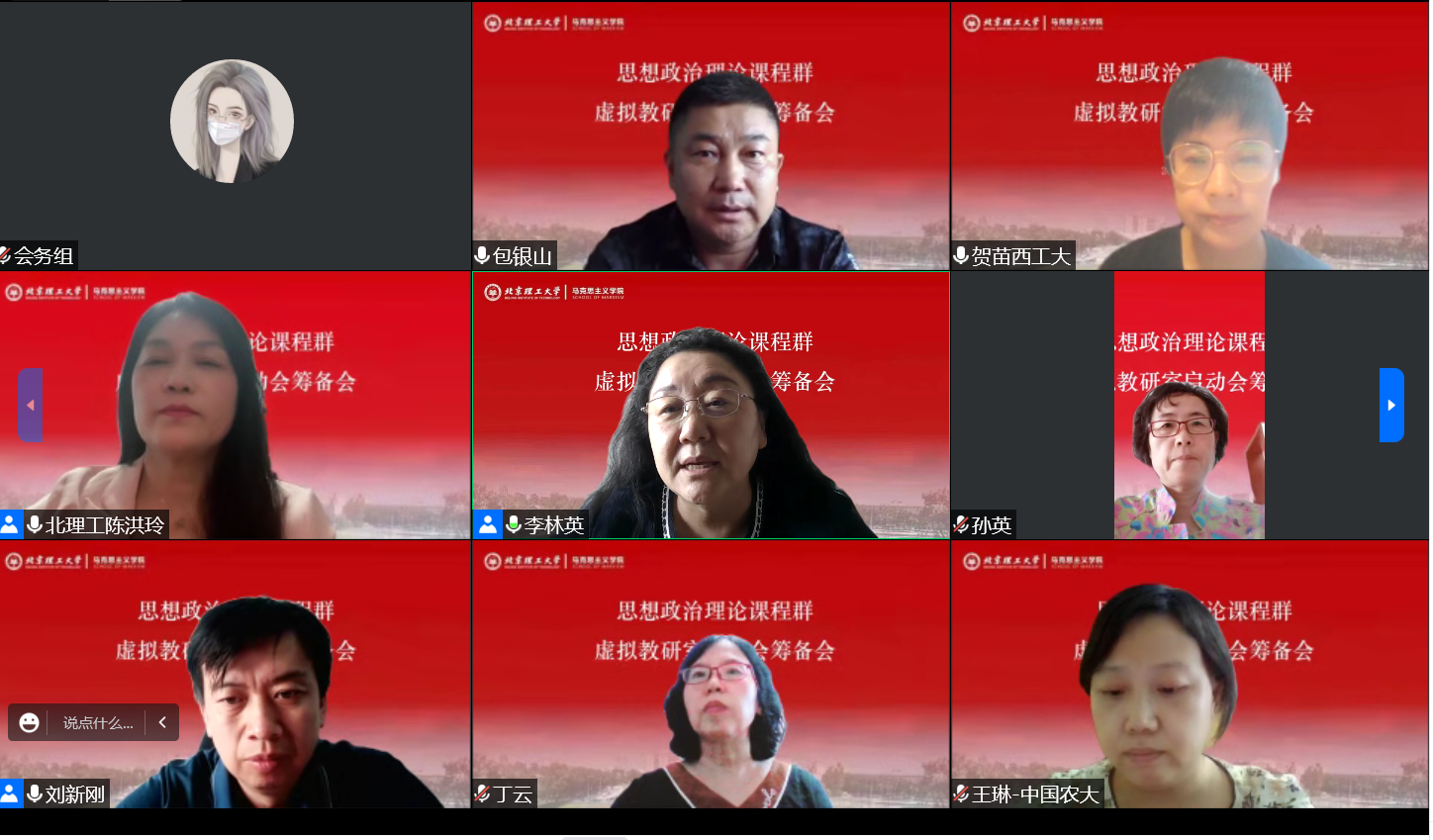 为贯彻落实“十四五”教育发展规划有关部署,加强信息化时代下新型基层教学组织建设,教育部高等教育司于2020年启动全国范围内虚拟教研室试点建设工作。日前,由北京理工大学beat365亚洲版官网牵头,中央民族大学beat365亚洲版官网、中国农业大学beat365亚洲版官网、beat365亚洲版官网、北京工业大学beat365亚洲版官网与内蒙古财经大学beat365亚洲版官网组成的思想政治理论课程群虚拟教研室联盟成功申报,入选全国第一批思想政治理论课程虚拟教研室试点单位。2022年8月11日下午,北京理工大学马院于腾讯会议云端组织召开思想政治理论课程群虚拟教研室启动会筹备会。beat365亚洲版官网马院副院长贺苗参与了本次线上会议。