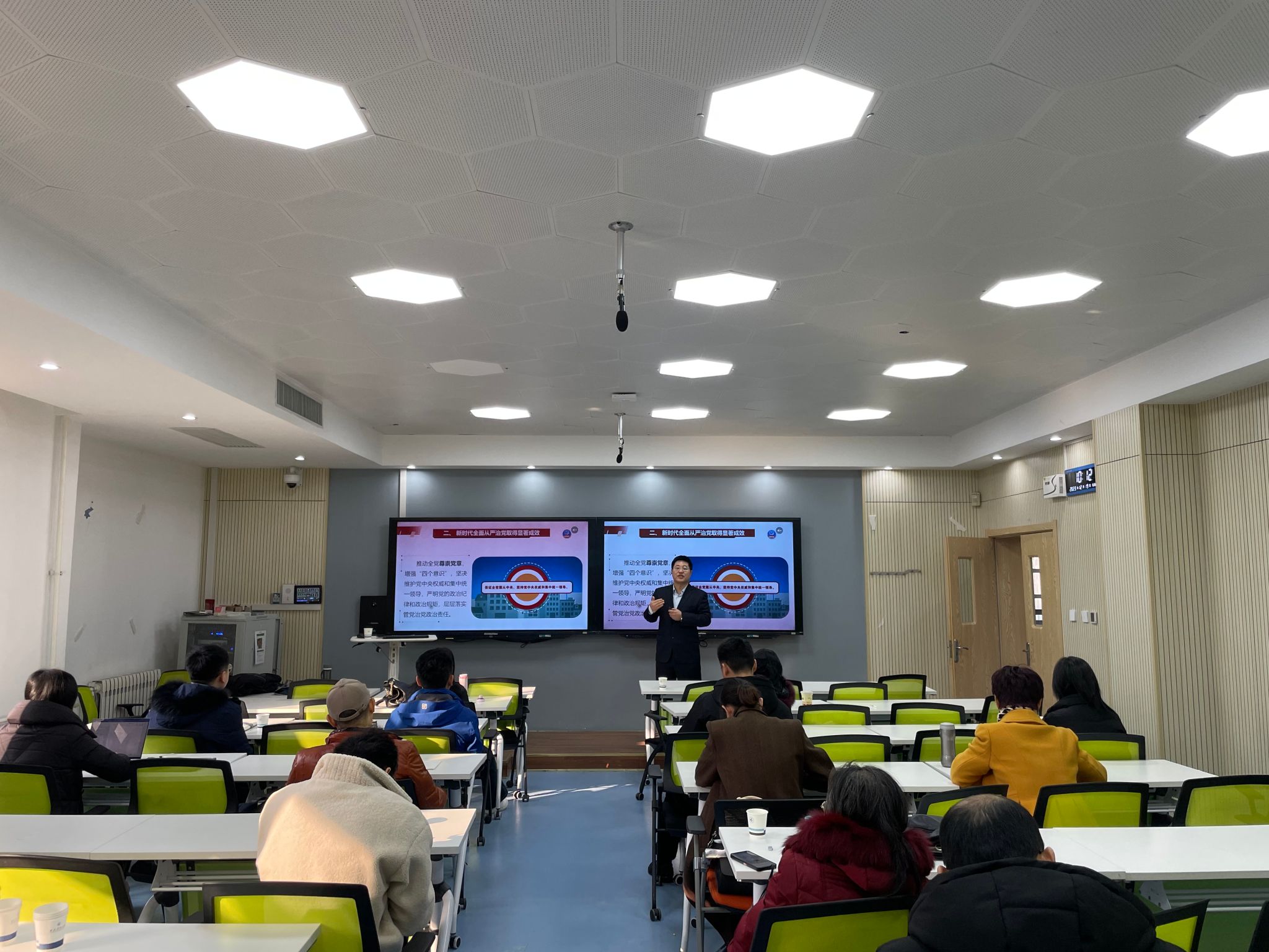 为进一步提升思政课教师教学能力,创新思政课教学内容,beat365官网beat365亚洲版官网开展“一堂好课”思政课示范观摩系列活动。2023年12月19日,活动邀请到西北大学beat365亚洲版官网赵沛副教授和西安工程大学beat365亚洲版官网副院长郭松教授分别进行本科生思政课《毛泽东思想和中国特色社会主义理论体系概论概论》和研究生思政课《新时代中国特色社会主义理论与实践》的教学示范,马克思主义中国化研究系全体教师参加观摩,马克思主义中国化研究系主任高旭红和教学主任华艳君主持了本次活动。