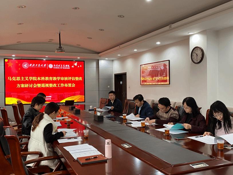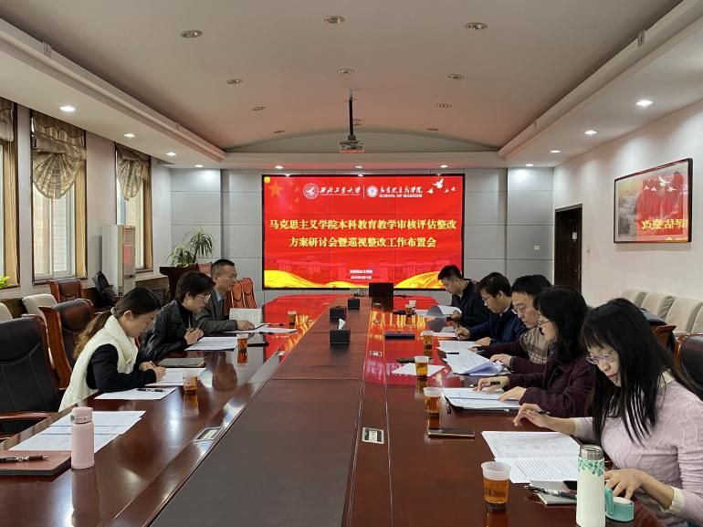 在习近平总书记主持召开学校思想政治理论课教师座谈会五周年来临之际,beat365亚洲版官网以问题为导向,继续加强本科思政课教学质量提升。2024年3月13日上午10:30,学院组织召开本科教育教学审核评估整改方案研讨会暨巡视整改工作布置会。学院党委书记蒲传新、副院长贺苗,马克思主义基本原理系教学主任杨永强、马克思主义中国化研究系教学主任华艳君、中国近现代史基本问题研究系教学主任房小捷、德法与形势政策系主任胡建发、思想政治教育系副教授张淑华,公共课教学秘书张笑男、张懿晨等参加了会议。会议由副院长贺苗主持。