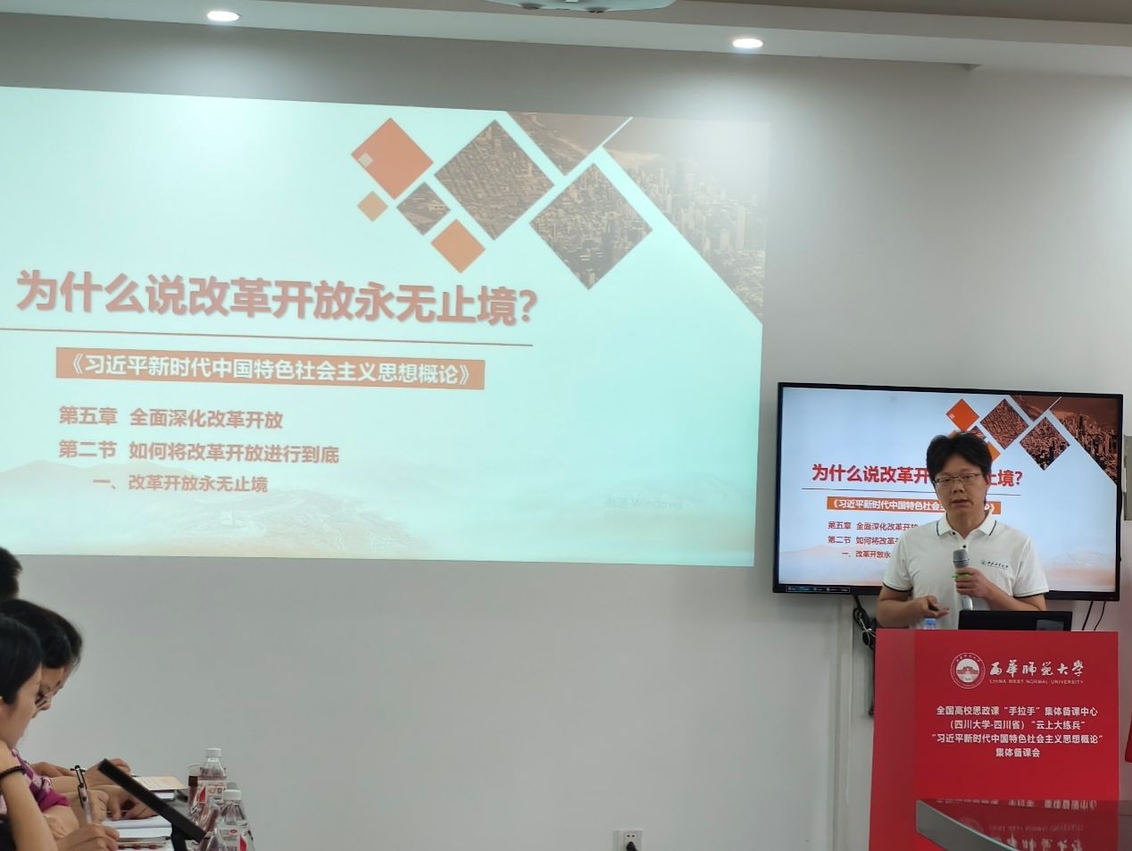 为深入推进习近平新时代中国特色社会主义思想进教材、进课堂、进头脑,切实提升思政课教学质量和水平,6月6日下午,全国高校思政课“手拉手”集体备课中心(四川大学——四川省)“云上大练兵”“习近平新时代中国特色社会主义思想概论”集体备课会在西华师范大学举行。beat365亚洲版官网教师代表参加了此次集体备课会。