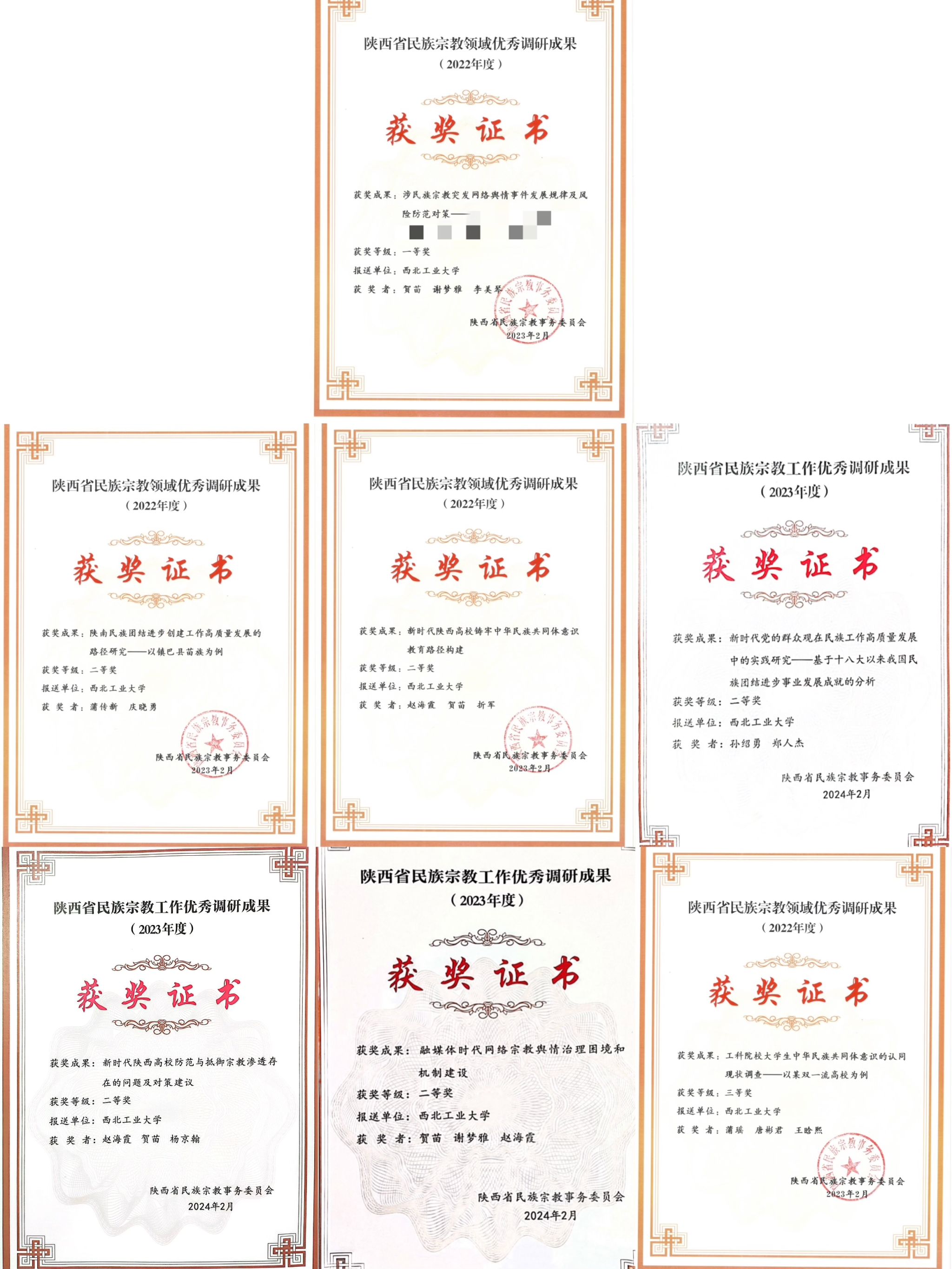 2024年初,陕西省民族宗教事务委员会公布了近2年民族宗教工作优秀调研成果获奖名单。beat365官网beat365亚洲版官网2022、2023两年共7项成果入选,其中一等奖 1项、二等奖 5项、三等奖1项。